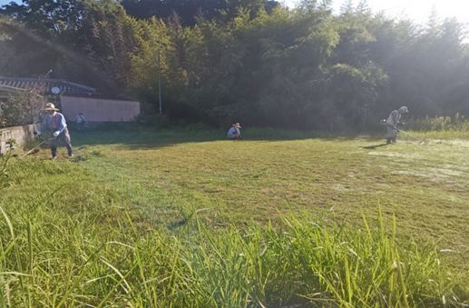 軽トラ3台分あった刈り草等は地域センター隣地に運び、後日焼却する予定です。
