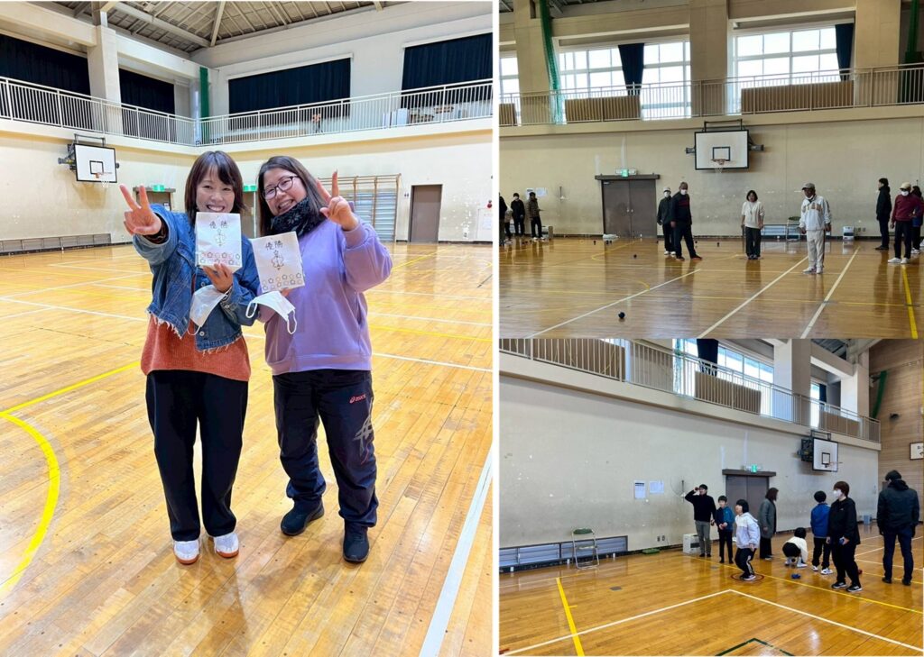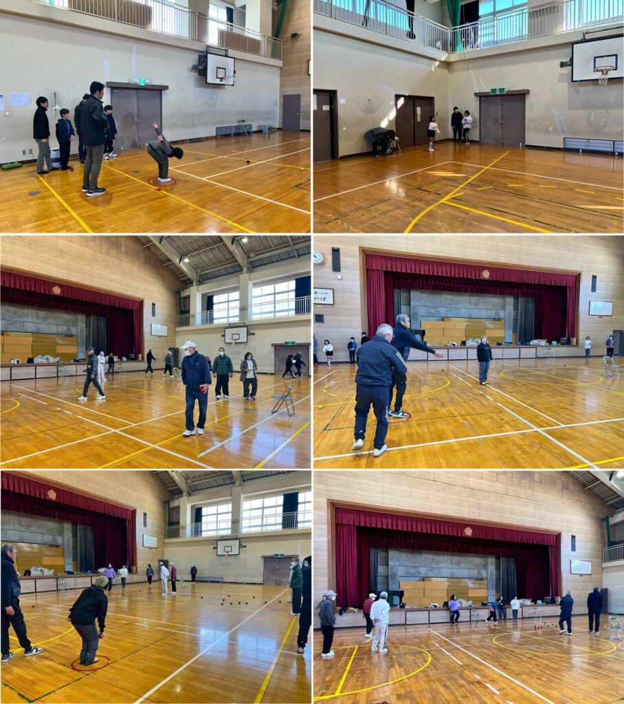 前週のグランドゴルフ大会に続き、11月30日小谷小学校体育館でペタンク大会を開催しました。